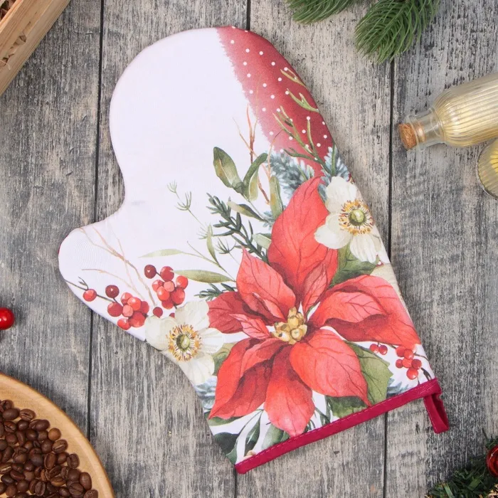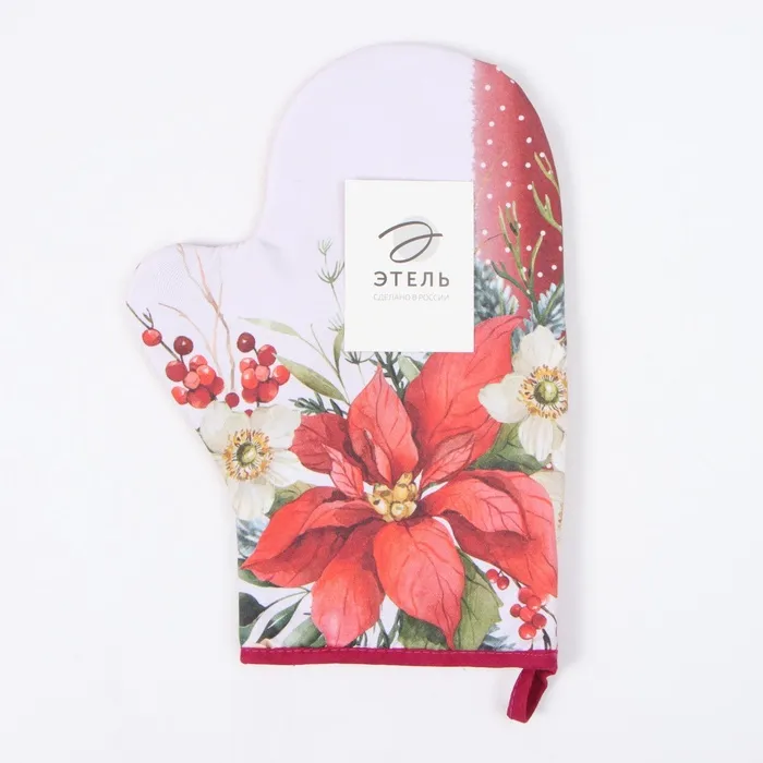 Варежка-Прихватка новогодняя "Этель" "Пуансеттия" 20х28 см, 100% хл, ватин 250 г/м2 — Характеристики