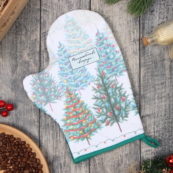 Варежка-прихватка новогодняя Этель "Сказочный лес" 20х28 см, 100% хл, ватин 250 г/м2 — Характеристики