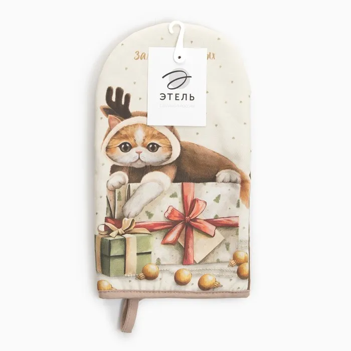 Варежка-прихватка новогодняя Этель "Замурчательных подарков" 15х28см,саржа, 100% хл, ватин 250г/м2 — Характеристики