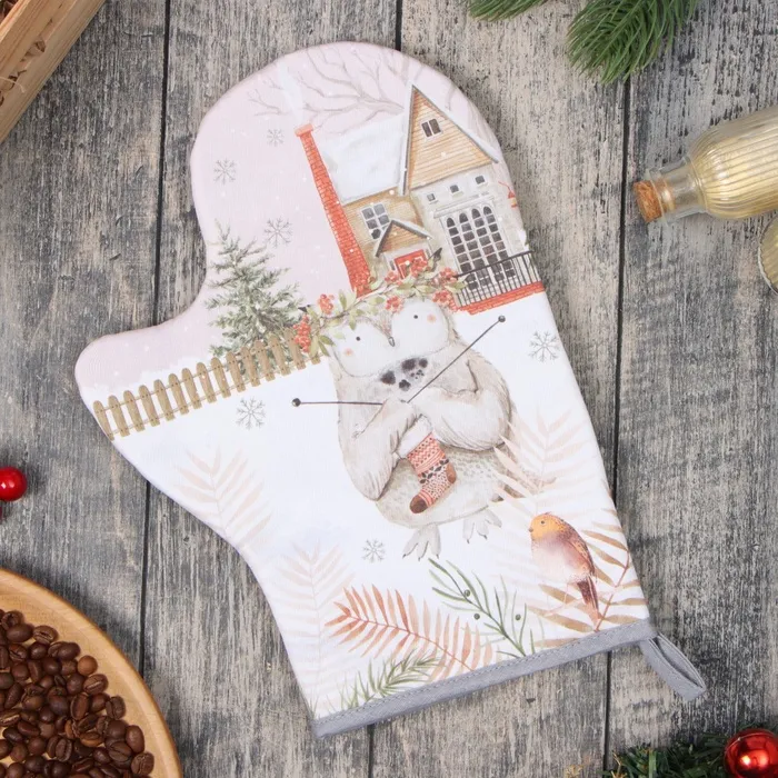 Варежка-прихватка новогодняя Этель "Звери в городе" 20х28 см, 100% хл, ватин 250 г/м2 — Характеристики