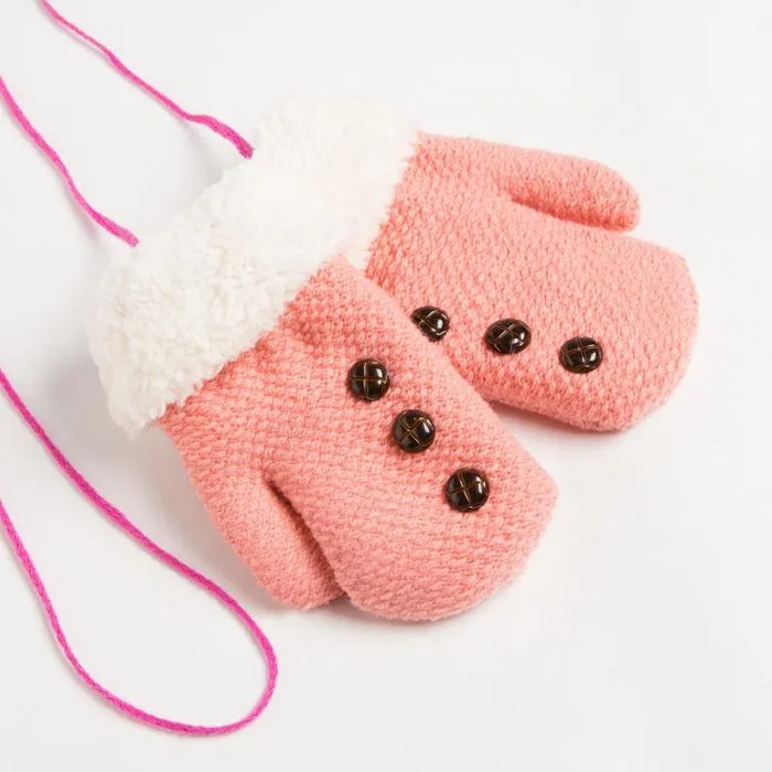 Варежки детские MINAKU с пуговичками, 15 р-р (15 см), цв.розовый — Характеристики