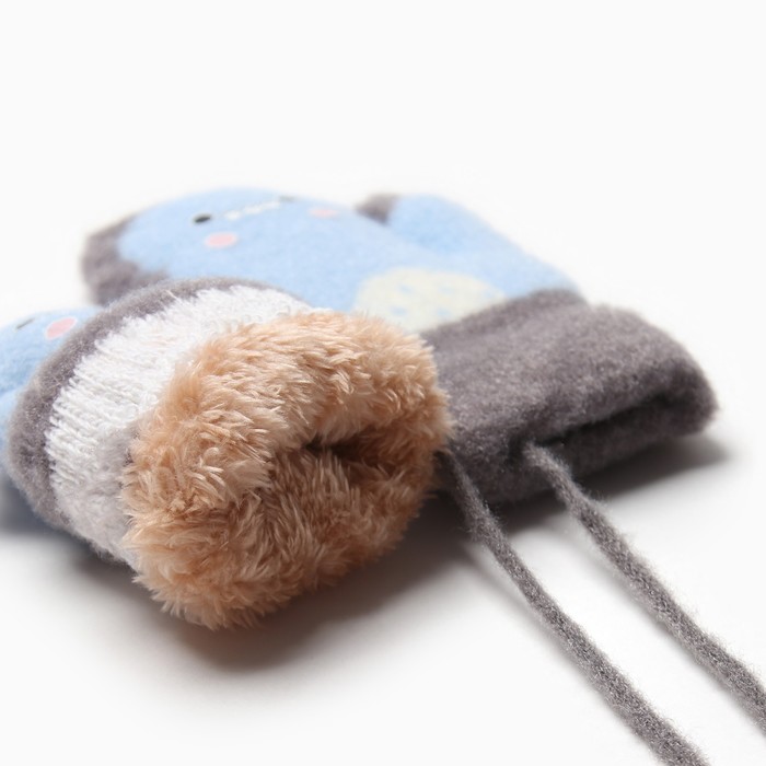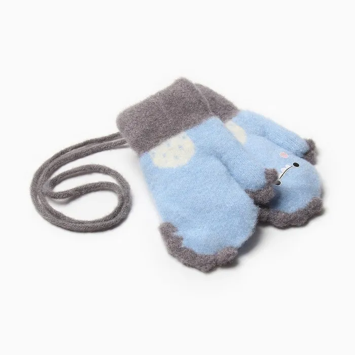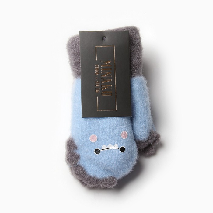 Варежки детские на иск.меху MINAKU динозавр 13 см голубой
