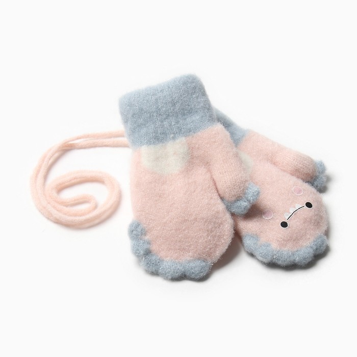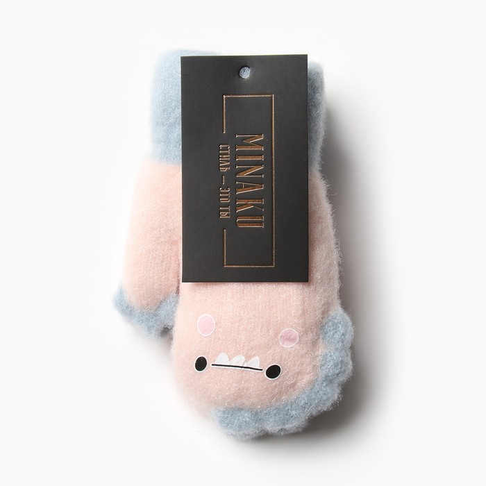 Варежки детские на иск.меху MINAKU динозавр 13 см розовый