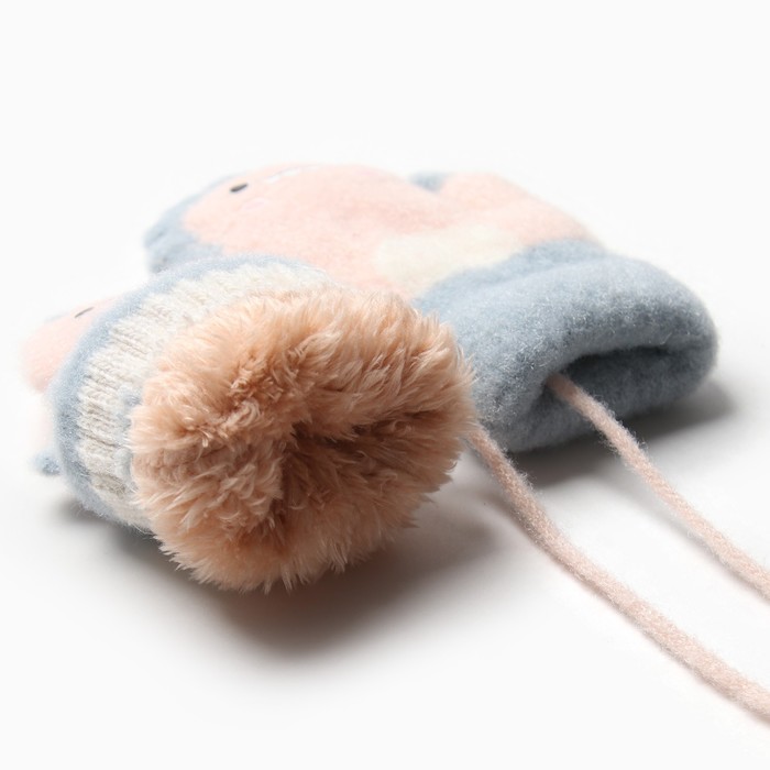 Варежки для девочки двойные, цвет серый/белый/персик, размер 12
