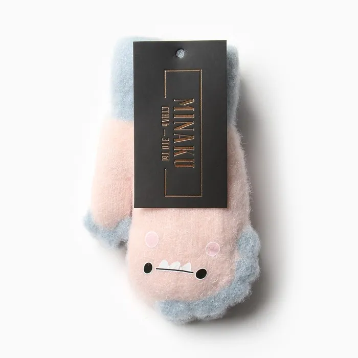 Варежки детские на иск.меху MINAKU динозавр 13 см розовый — Характеристики