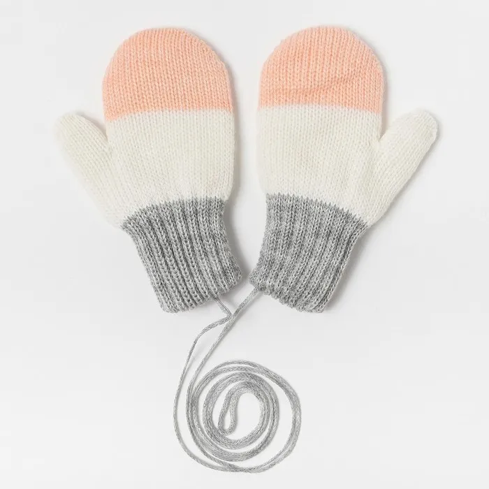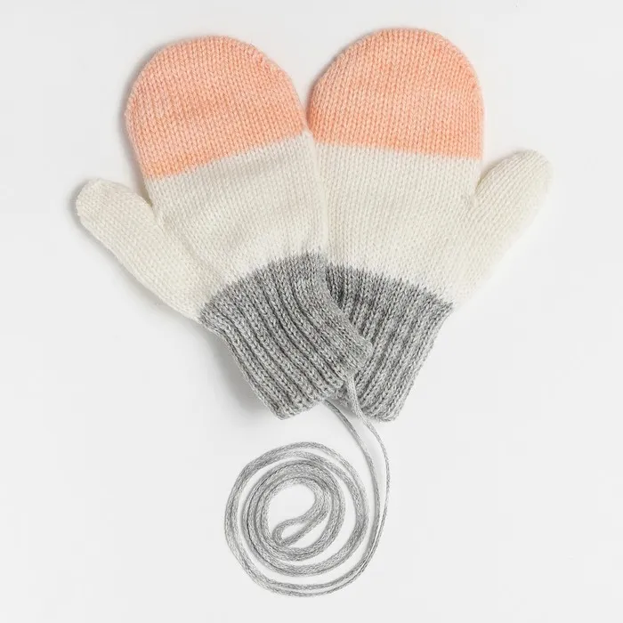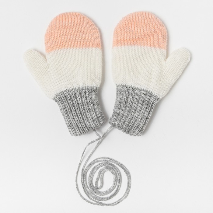 Варежки для девочки двойные, цвет серый/белый/персик, размер 12 — Характеристики