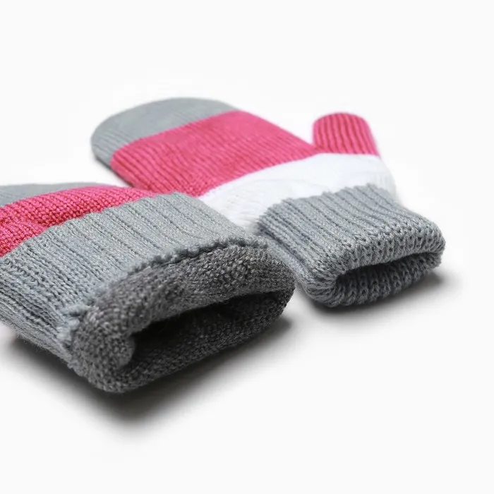 Варежки для девочки, серый/белый/малиновый, размер 12 — Характеристики
