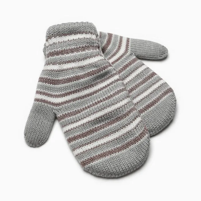 Варежки для мальчика двойные, серый с коричневым, размер 14 — Характеристики