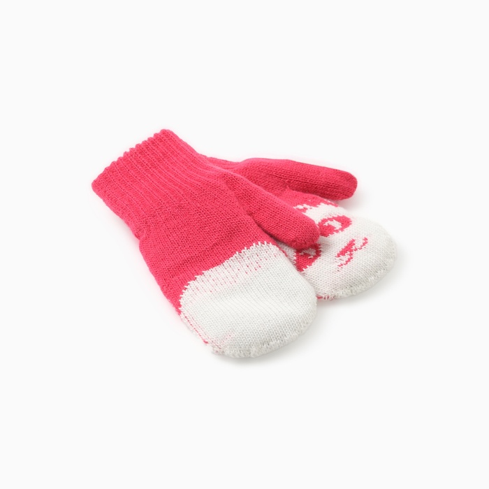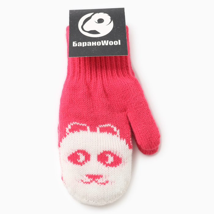 Варежки двойные детские "Мишка", цвет малиновый, р-р 16