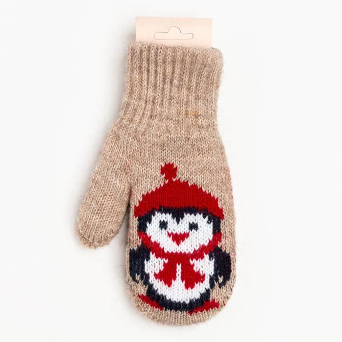 Варежки двойные детские, цвет бежевый/пингвин, размер 16 (9-12 лет) — Характеристики