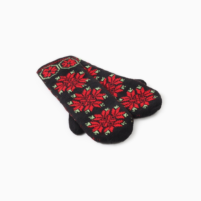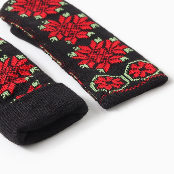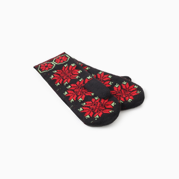 Варежки двойные женские "Орнамент", цвет черный/красный, р-р 18 — Характеристики