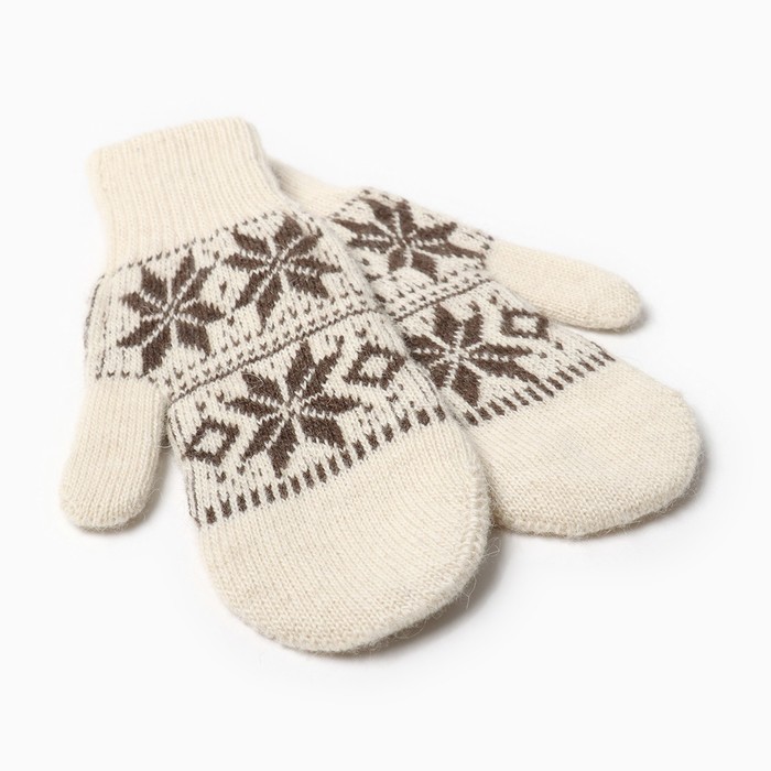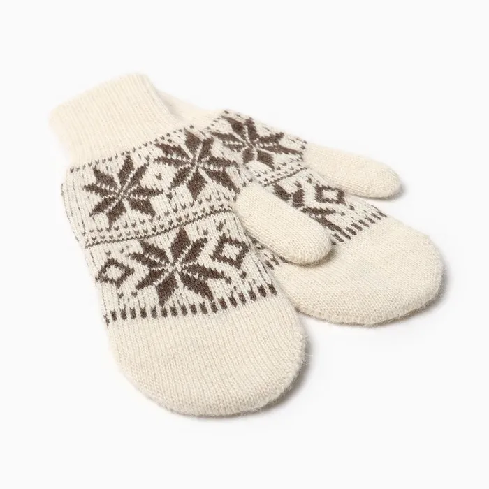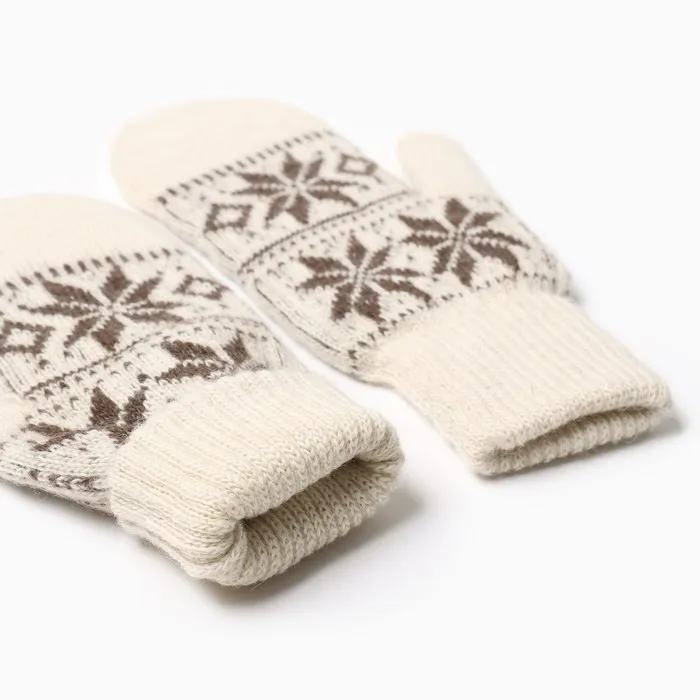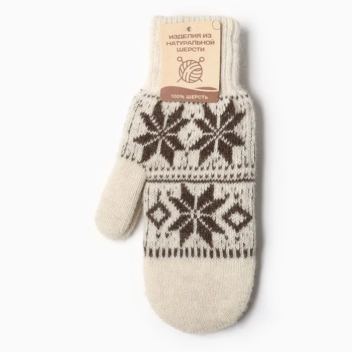 Варежки двухслойные шерстяные, цвет молочный/снежинки, размер M — Характеристики