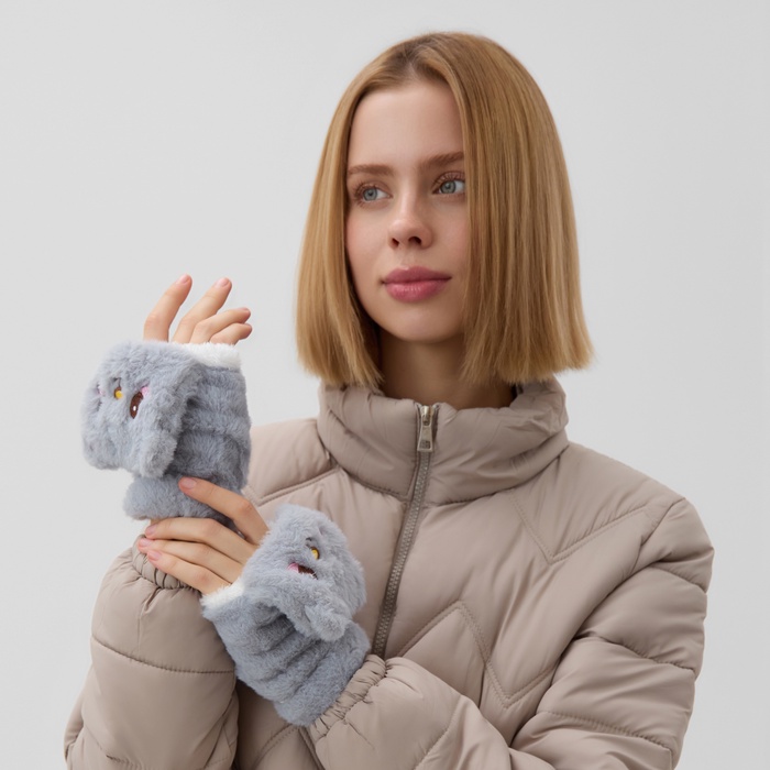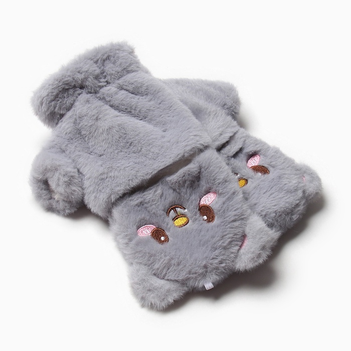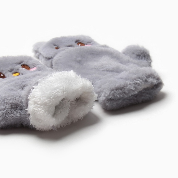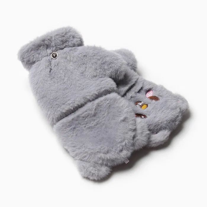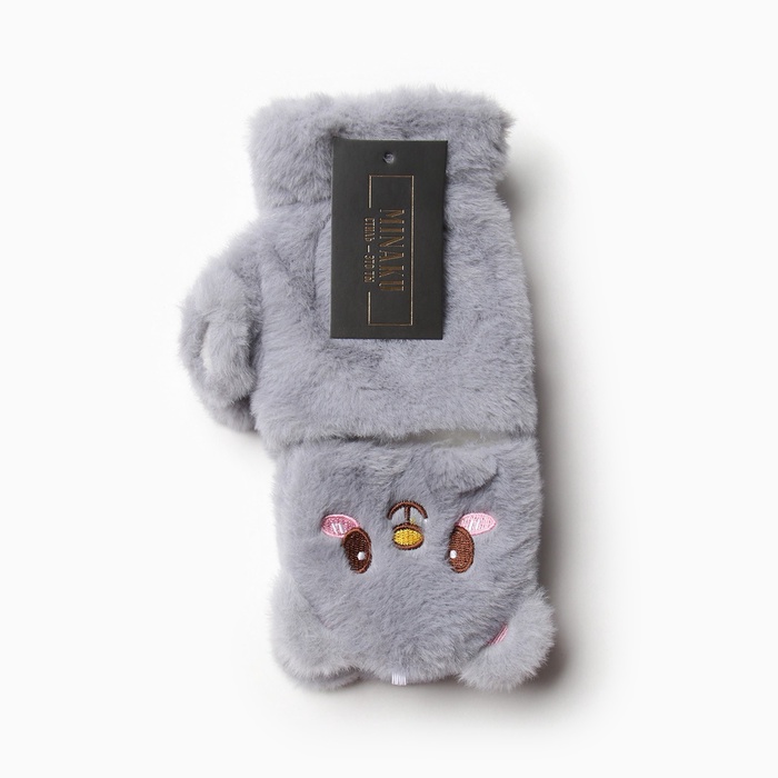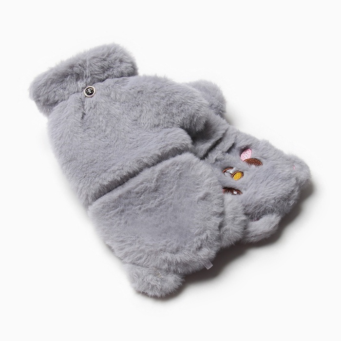 Варежки - митенки женские MINAKU «Мишка», размер 24 см, серые — Характеристики