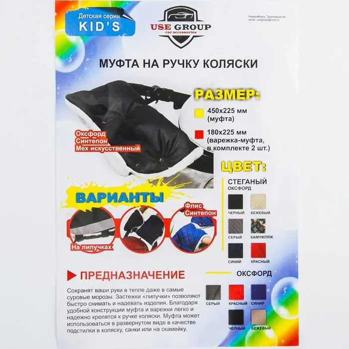Тёплый аксессуар согреет руки родителей во время зимних прогулок с малышом. Универсальная модель подходит к любой коляске и санкам: оберните её вокруг ручки и застегните кнопки. Изделие надёжно защитит от холода и ветра.