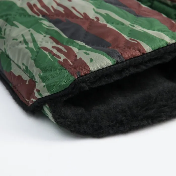 Внешнее покрытие муфты выполнено из непромокаемой ткани. Внутри есть искусственный мех, наполнитель — синтепон. Слева и справа расположены по две застёжки, ещё две кнопки находятся посередине. Муфта украшена рисунком в виде снежинок разной формы.