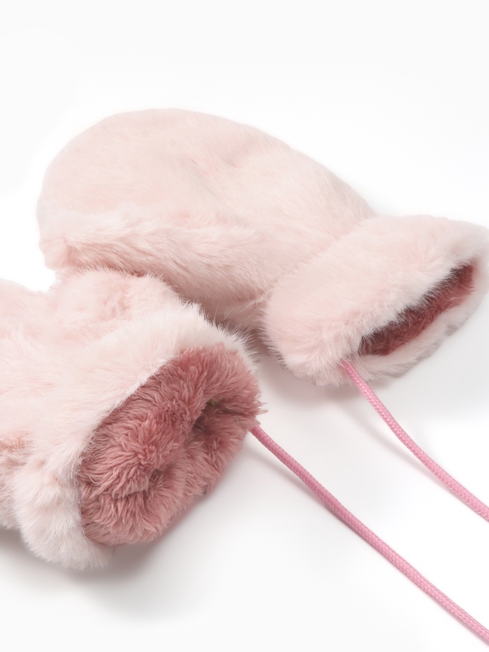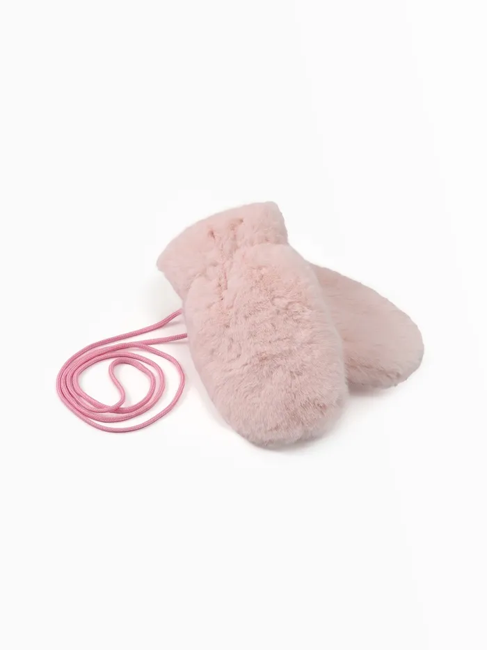 Тёплые варежки для девочки с завязками и нежным розовым оттенком созданы для снежных приключений. Пушистые и мягкие, они согреют руки в любую стужу.
