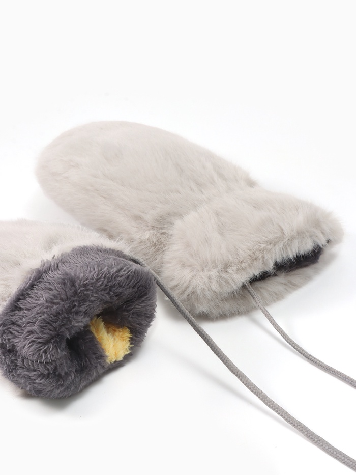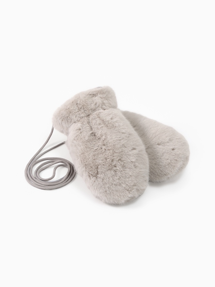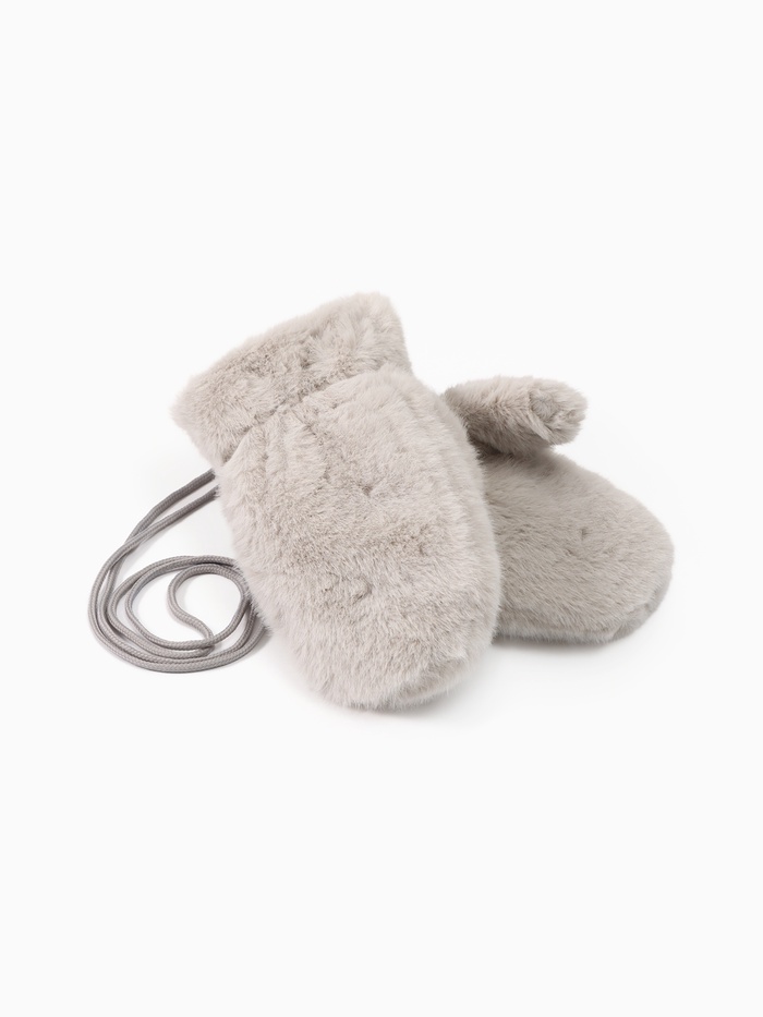 Пушистые варежки для девочки с удобными завязками защитят руки от мороза и снега. Мягкий серый цвет сочетается с любой зимней одеждой, а плотная структура материала сохраняет тепло даже в сильные холода.