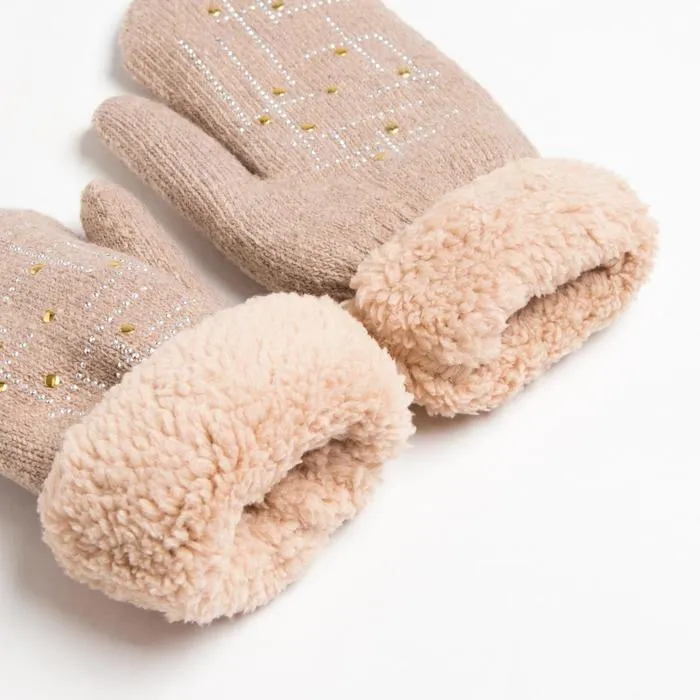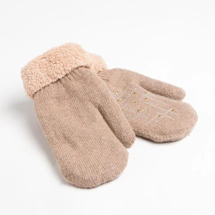 Варежки женские MINAKU однотонные со стразами, р-р 23 см, цв.бежевый — Характеристики