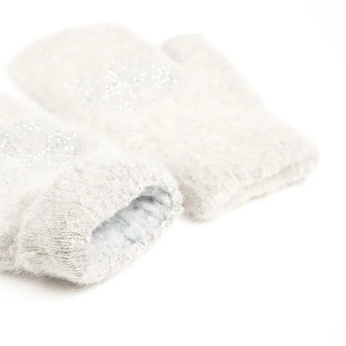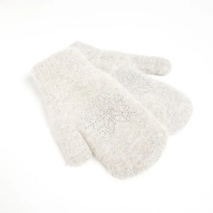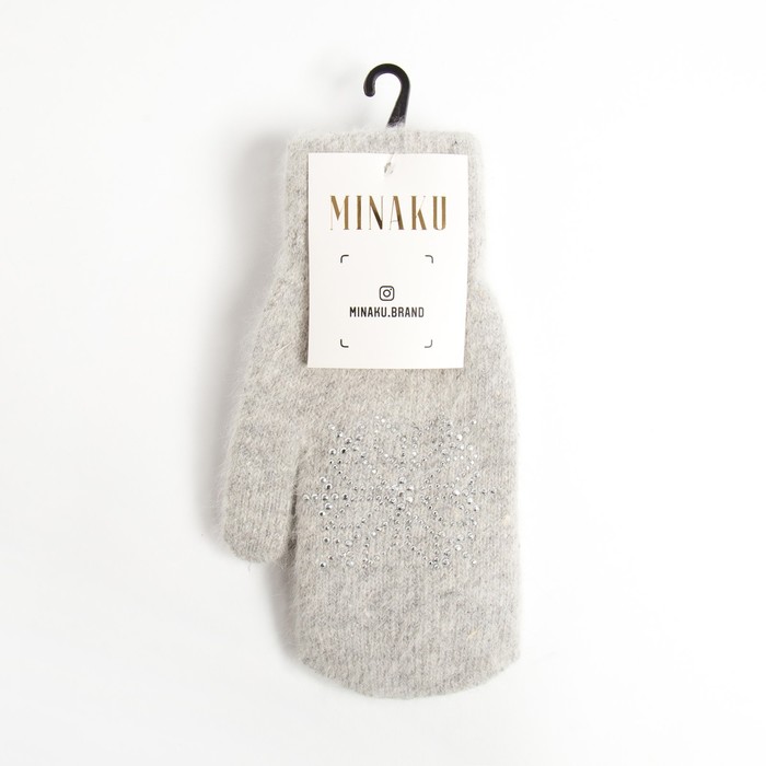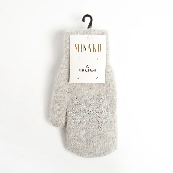 Варежки женские MINAKU однотонные со стразами, р-р 23 см, цв.светло-серый