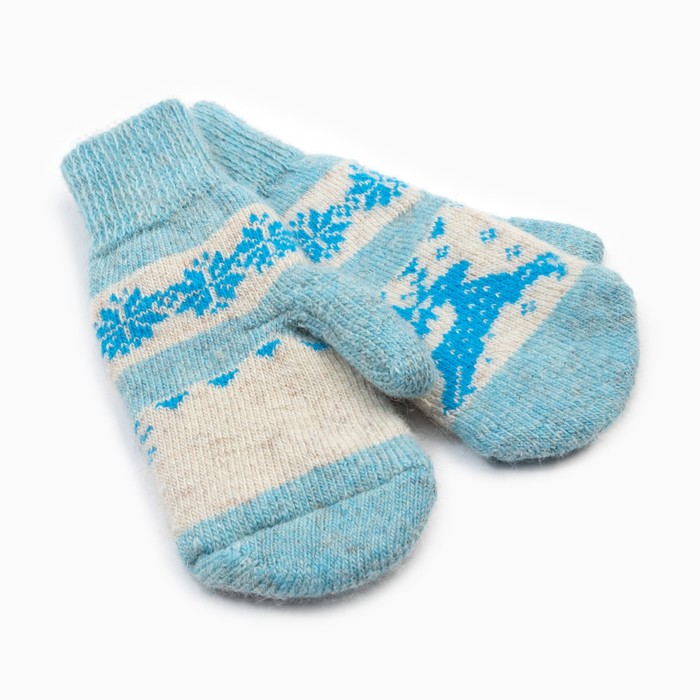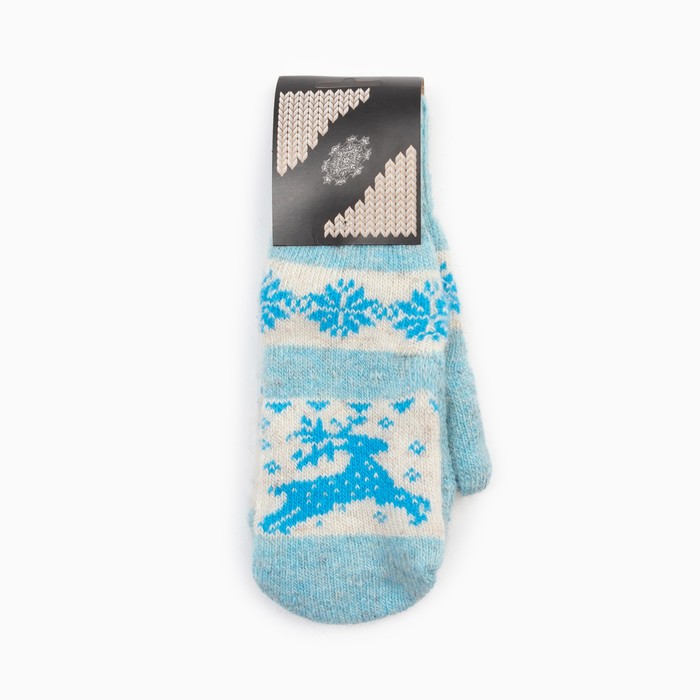 Варежки женские шерстяные «Олень со снежинкой», цвет голубой, размер 20-22 — Характеристики