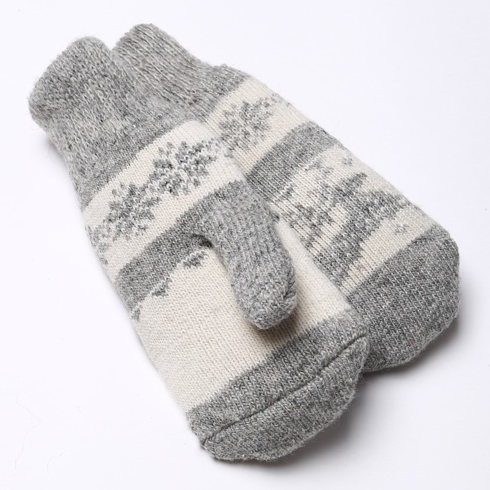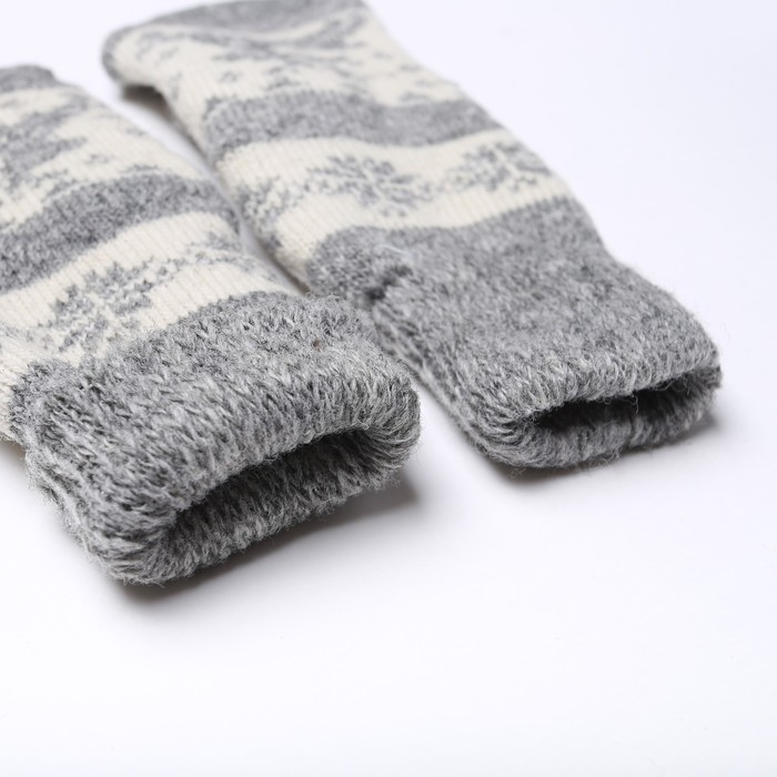 Варежки женские шерстяные «Олень со снежинкой», цвет светло-серый/белый, размер 20-22 — Характеристики