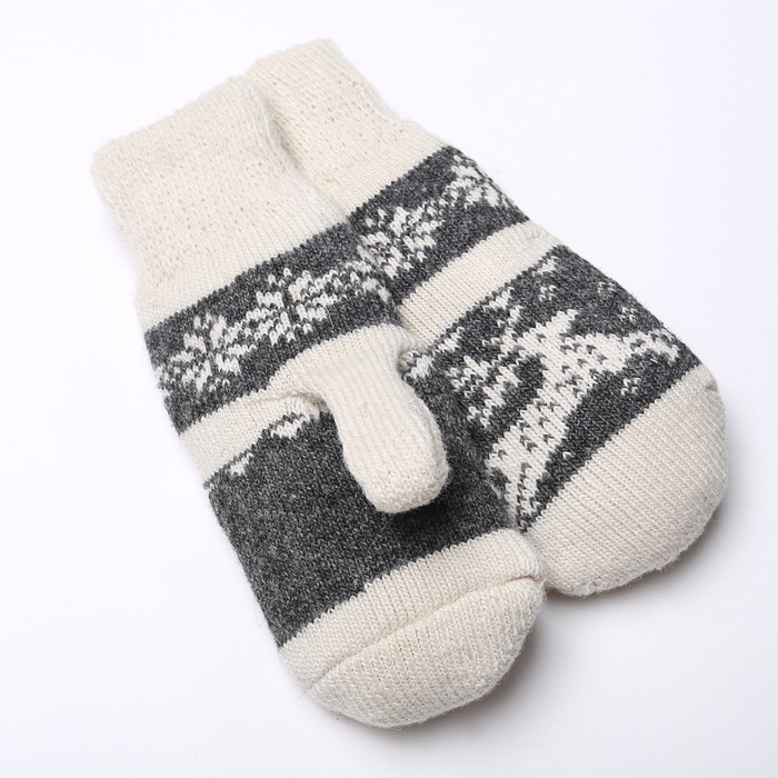 Варежки женские шерстяные, цвет белый/серый, размер 20-22 — Характеристики