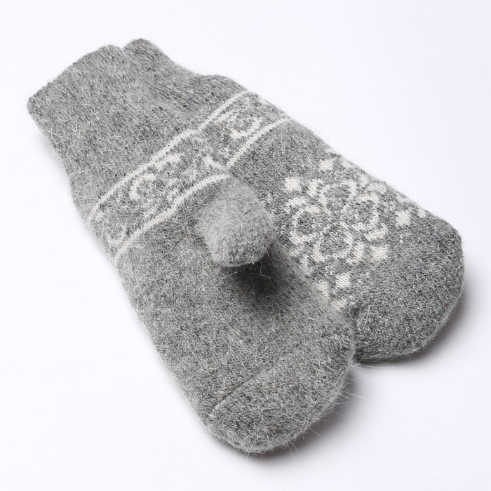 Варежки женские шерстяные, цвет серый/белый, размер 20-22 — Характеристики