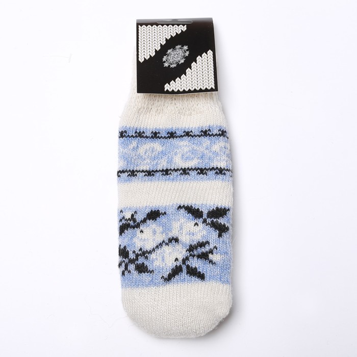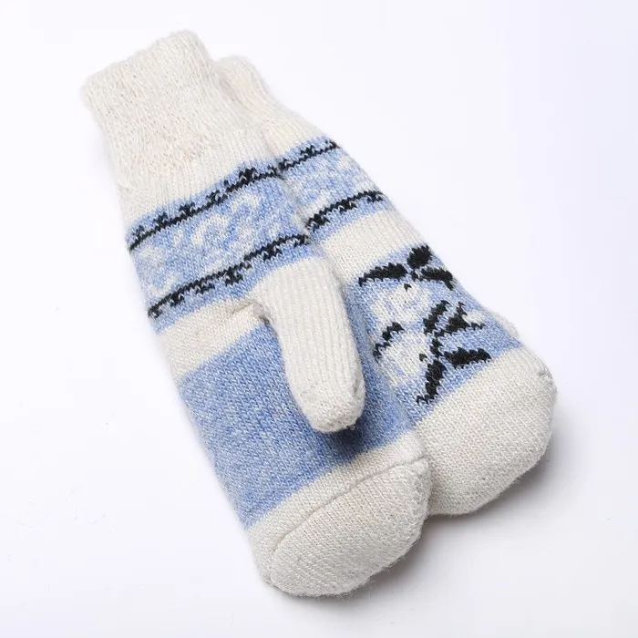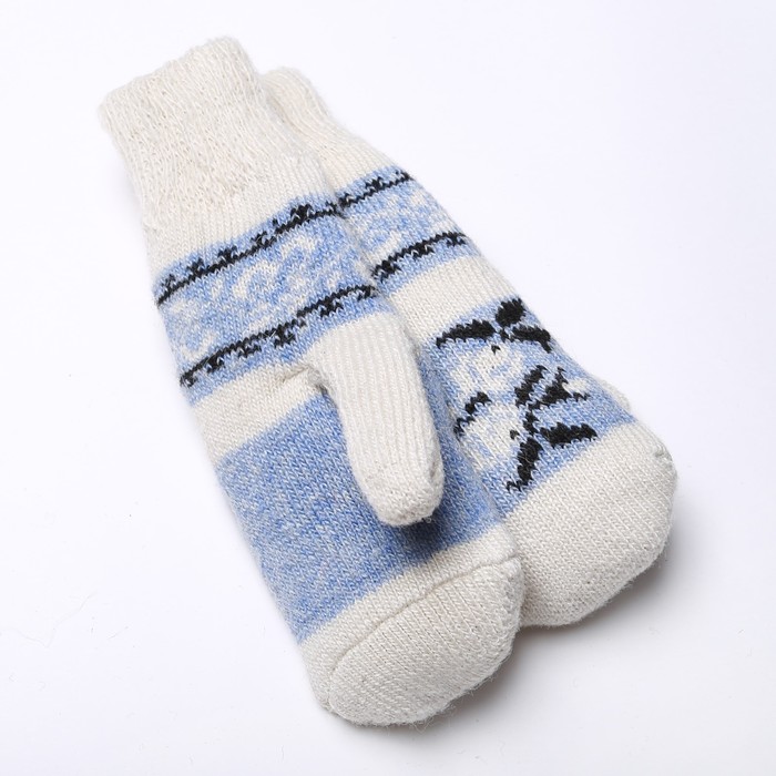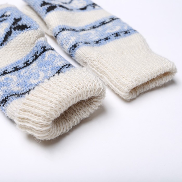 Варежки женские шерстяные «Весна», цвет белый/голубой, размер 20-22 — Характеристики
