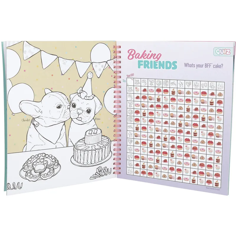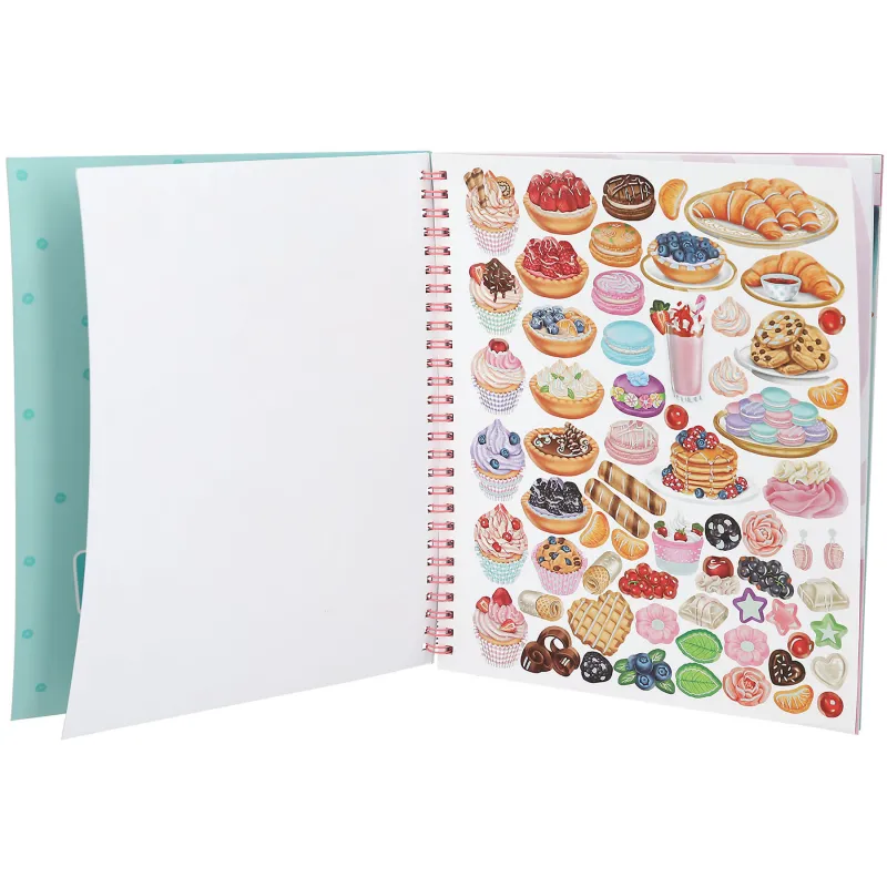 Эта очаровательная раскраска TOPModel полна вкусных изображений тортов и пирожных для раскрашивания. В книге на спирали содержится 32 страницы и 5 страниц с наклейками. Обложка украшена милым кексом с пайетками. Книга обеспечит творческое занятие на долгие часы!