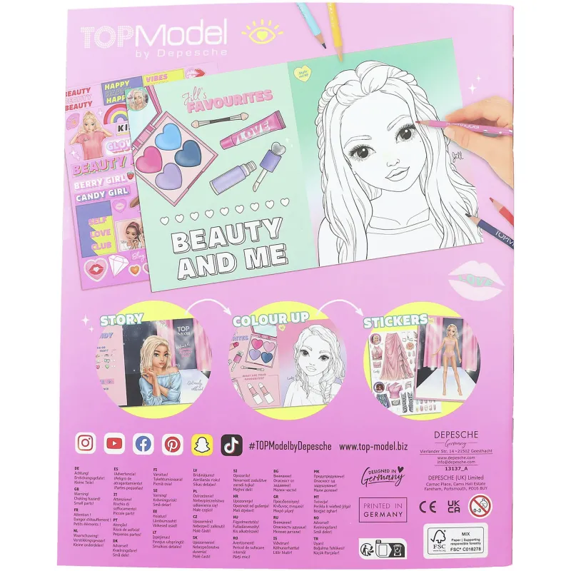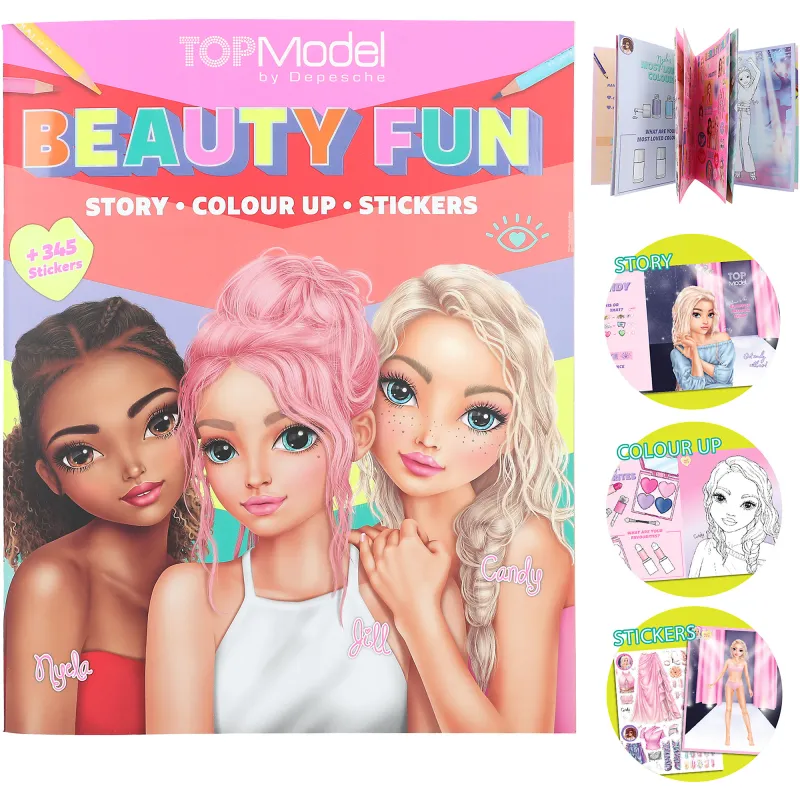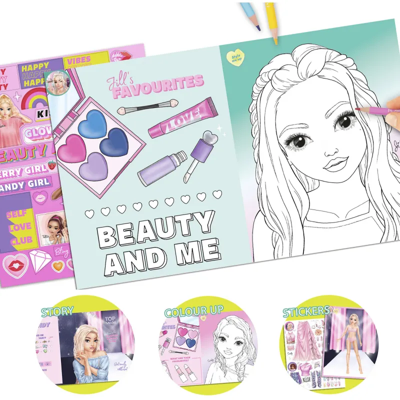Косметика, модели ногтей, наряды и аксессуары! Очаровательная раскраска TOPModel на тему красоты включает в себя удивительные 36 страниц для раскрашивания и наклеек. В книге есть два двойных листа наклеек и один двойной лист с фольгированными наклейками. Идеальное времяпрепровождение для длинных поездок на автомобиле, поезде или самолете!
