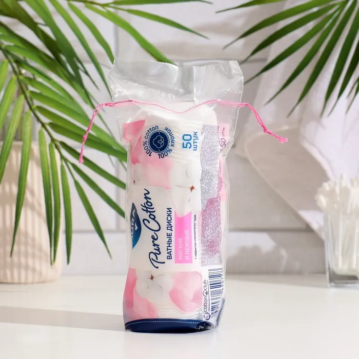 В упаковке содержится 50 ватных дисков, которых хватит на долгое время. Благодаря удобной упаковке, их легко хранить и использовать дома или брать с собой в дорогу.