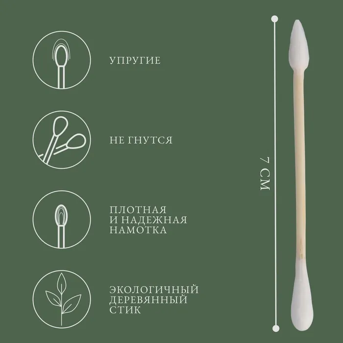 Каждая палочка выполнена из натурального дерева и хлопка, что обеспечивает бережное и эффективное использование. Длина в 7 см делает их удобными для различных целей, от гигиенических процедур до детальной уборки. Упаковка в пластиковом органайзере позволяет держать палочки всегда под рукой и сохраняет их в идеальной чистоте.