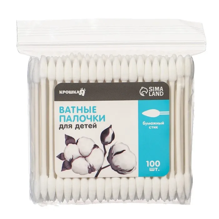 Ватные палочки, пакет 100 шт., наконечник - острый, хлопок/бумага(стик) — Характеристики