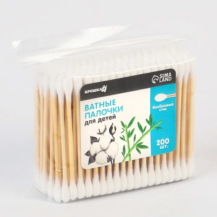 Ватные палочки, пакет 200 шт., бамбук