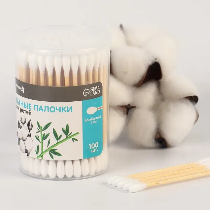 Ватные палочки в тубе 100 шт., наконечник - классика, хлопок/бамбук(стик)