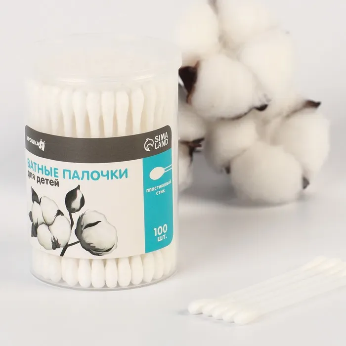 Ватные палочки в тубе 100 шт., наконечник - классика, хлопок/пластик(стик) — Характеристики