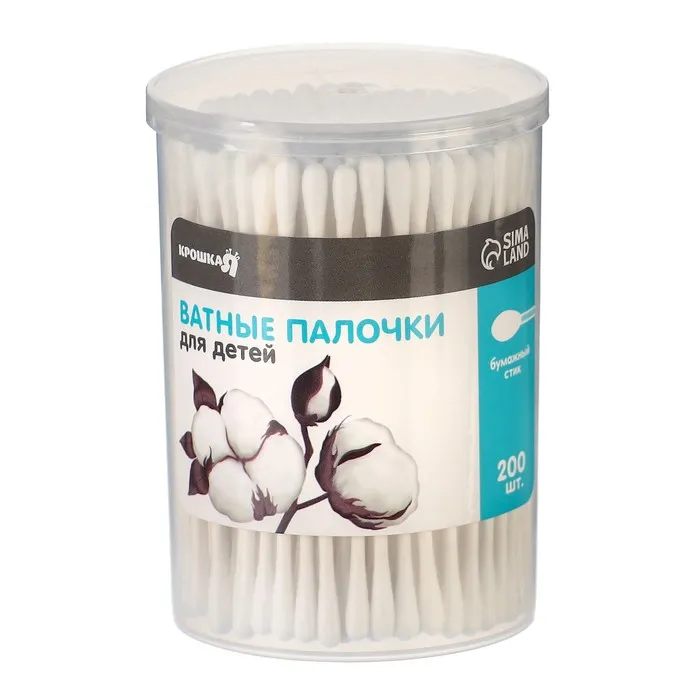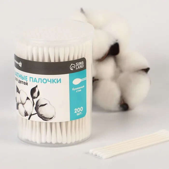 Ватные палочки в тубе 200 шт., тонкие, наконечник - классика, хлопок/бумага(стик) — Характеристики
