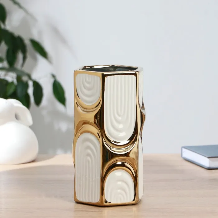 Ваза «Голден тайм», 33×7.5×3 см, керамика, золото
