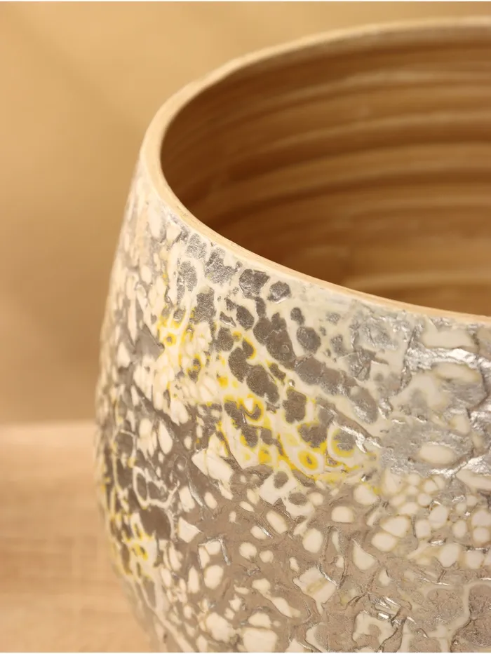 Элегантное решение для вашего интерьера — бамбуковая ваза 25 см. Сочетая природные материалы и стильный дизайн, этот декоративный элемент станет заметным акцентом в любой комнате. Универсальная палитра белого и серебристого цветов прекрасно дополнит как современный, так и классический декор.