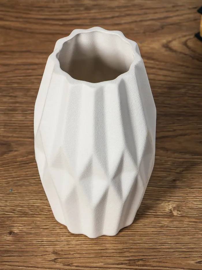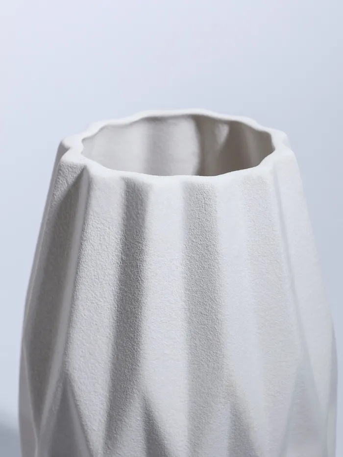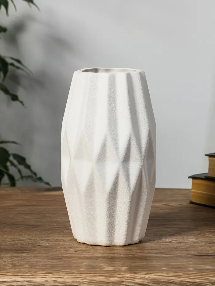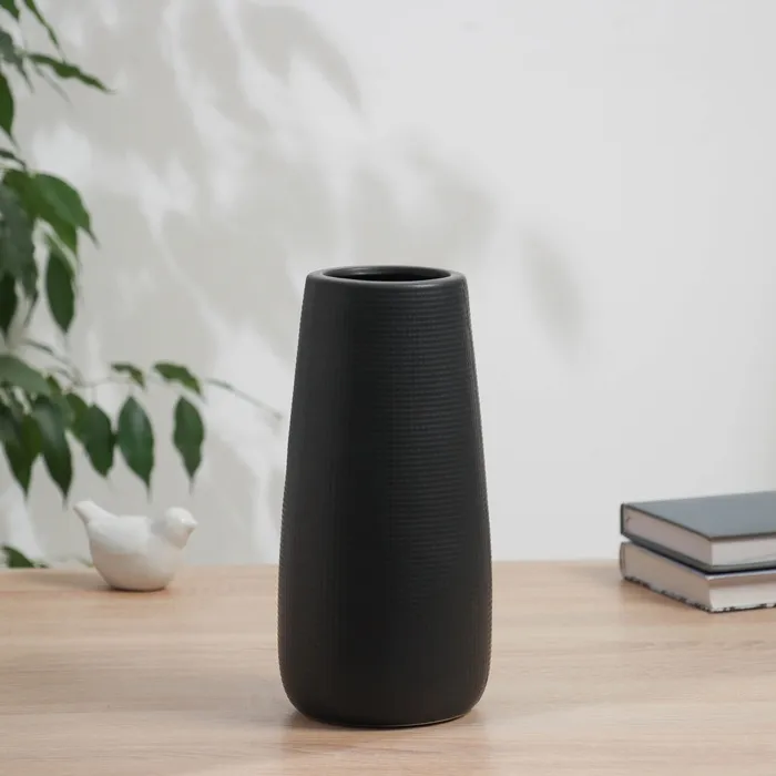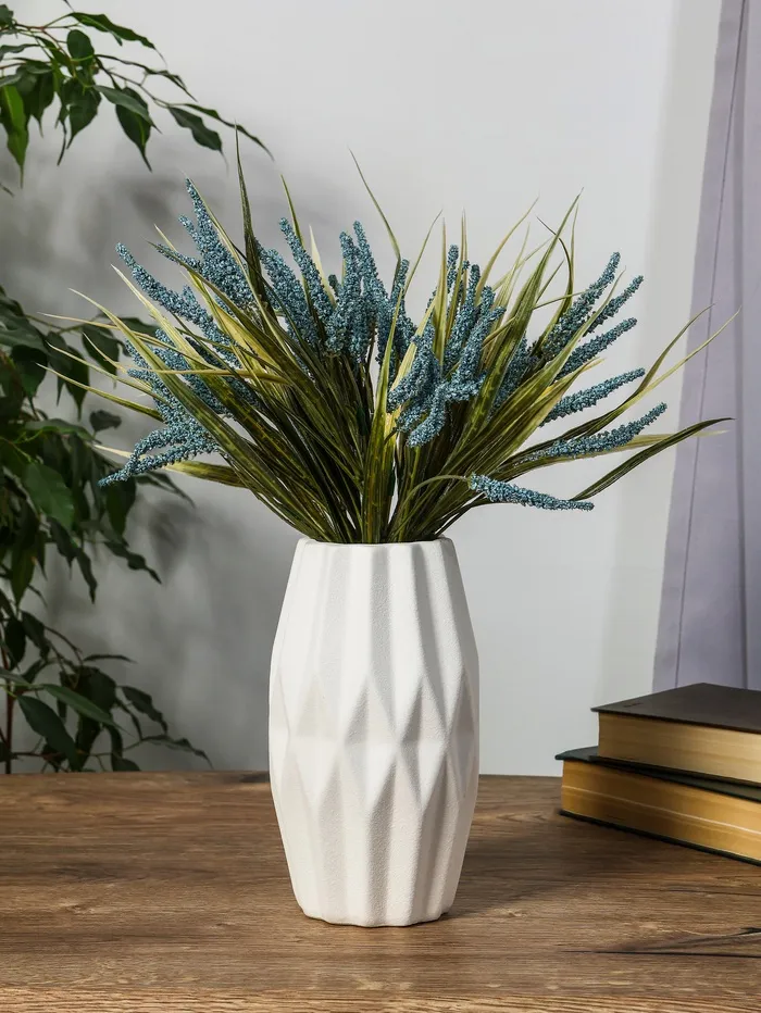 Эта керамическая ваза отлично подходит для оформления как с живыми цветами, так и с декоративными сухими букетами. Ее геометрическая форма и рельефное оформление делают ее привлекательной как самостоятельный элемент декора, так и частью композиции. Простая в уходе и универсальная по стилю — она станет надежным акцентом в любом пространстве.