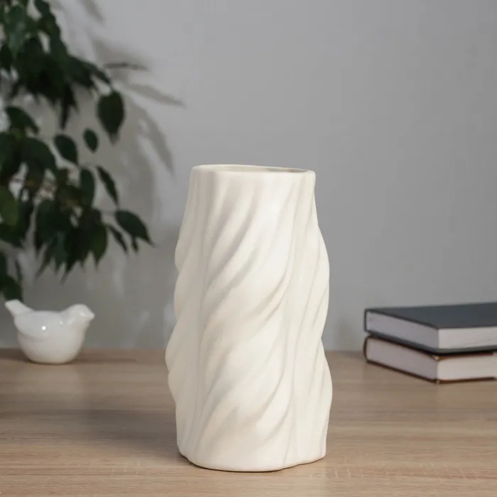 Эта настольная керамическая ваза с рельефным оформлением станет стильным дополнением интерьера. Ее геометрический дизайн и белый цвет создают гармоничное сочетание, которое подчеркнет свежесть и чистоту пространства. Благодаря компактным размерам — 20×11 см — она легко впишется на полку, стол или комод, придавая комнате изящный акцент.