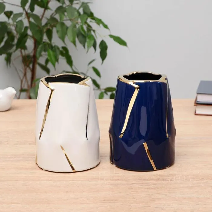 Элегантная ваза с объемом 1 литр, выполненная из качественной керамики. Превосходный выбор для праздничного стола на 8 марта. Доступна в белом и синем цветах, украшена изысканными золотистыми элементами, что добавляет ей утонченности и шика. Настольный аксессуар, который подчеркнёт стиль вашего интерьера.