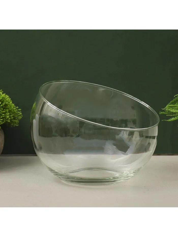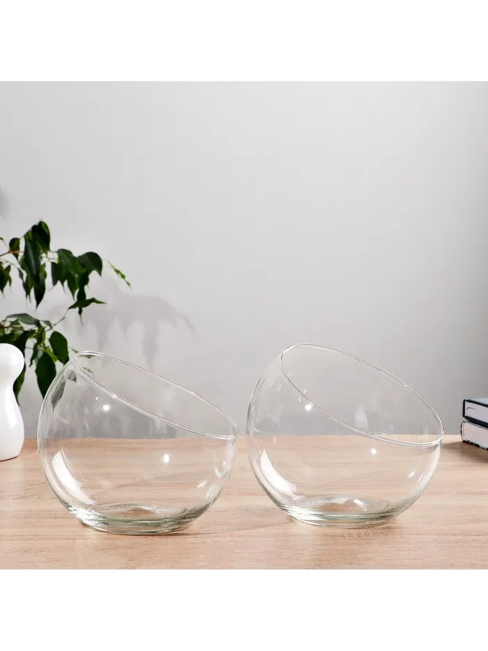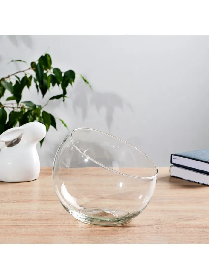 • Элегантный вид: косой срез добавляет оригинальности, что позволяет использовать вазу для флорариума.