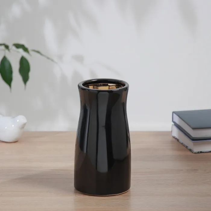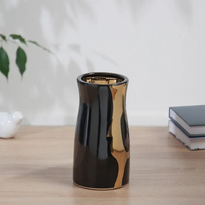 Настольная ваза высотой 18 см из черной керамики с золотистым декором. Элегантное решение для тех, кто ценит стиль и качество. Добавьте акцент в ваш интерьер, который подходит к любой обстановке.