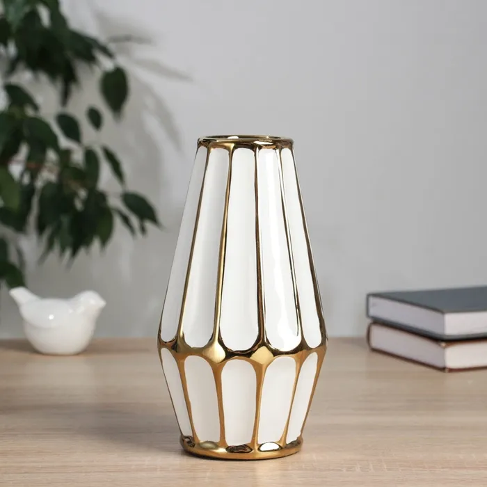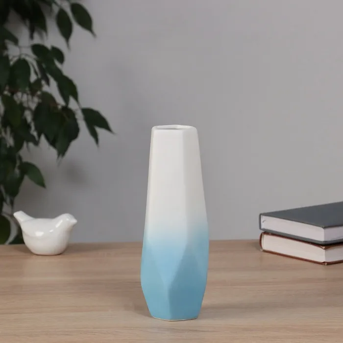 Ваза «Хайди», грани галант, 21×7 см, керамика, белая, голубая