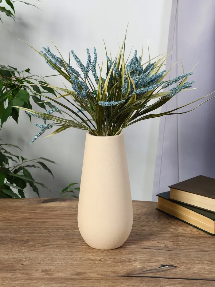 Керамическая ваза для цветов, сухоцветов «Дарио» талия, настольная, 21.5×7.5 см, серебро