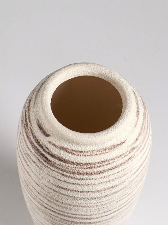 - Современная палитра: Сочетание бежевого и коричневого оттенков создает теплый, спокойный колорит. Такая ваза легко вписывается в большинство интерьерных решений — от скандинавского стиля до лофта.