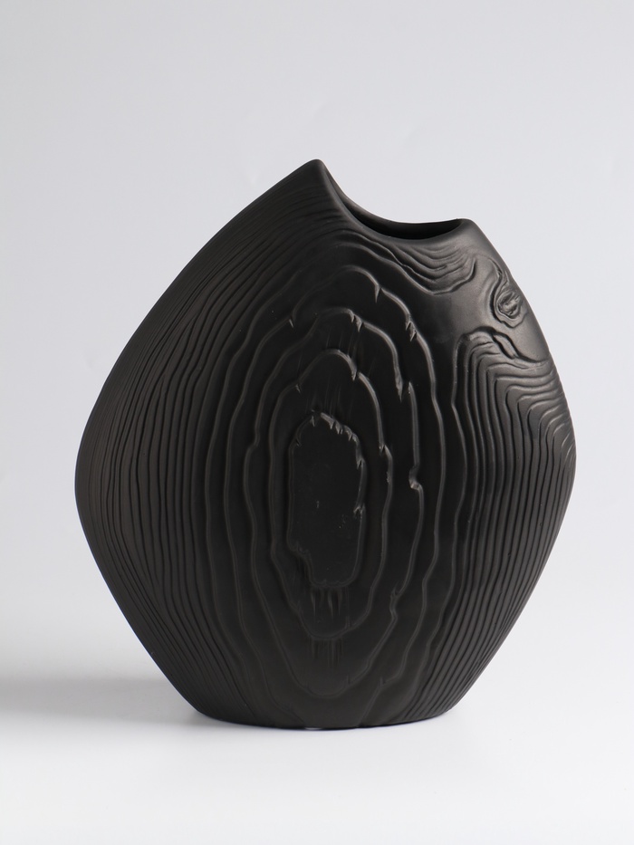 - Глубокий матовый чёрный: Ваза обладает насыщенным, благородным цветом. Матовая поверхность не отвлекает внимание, а подчеркивает красоту цветочных композиций.