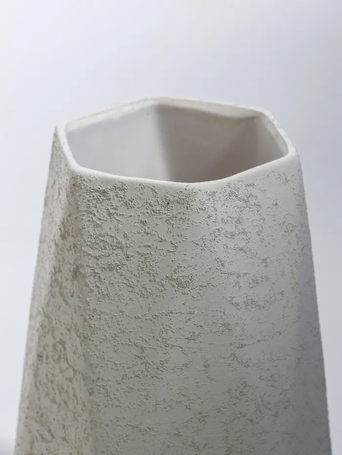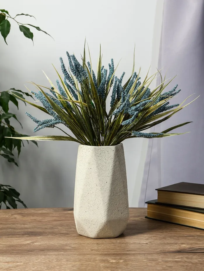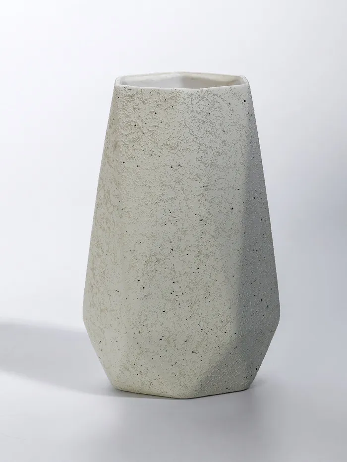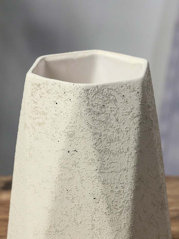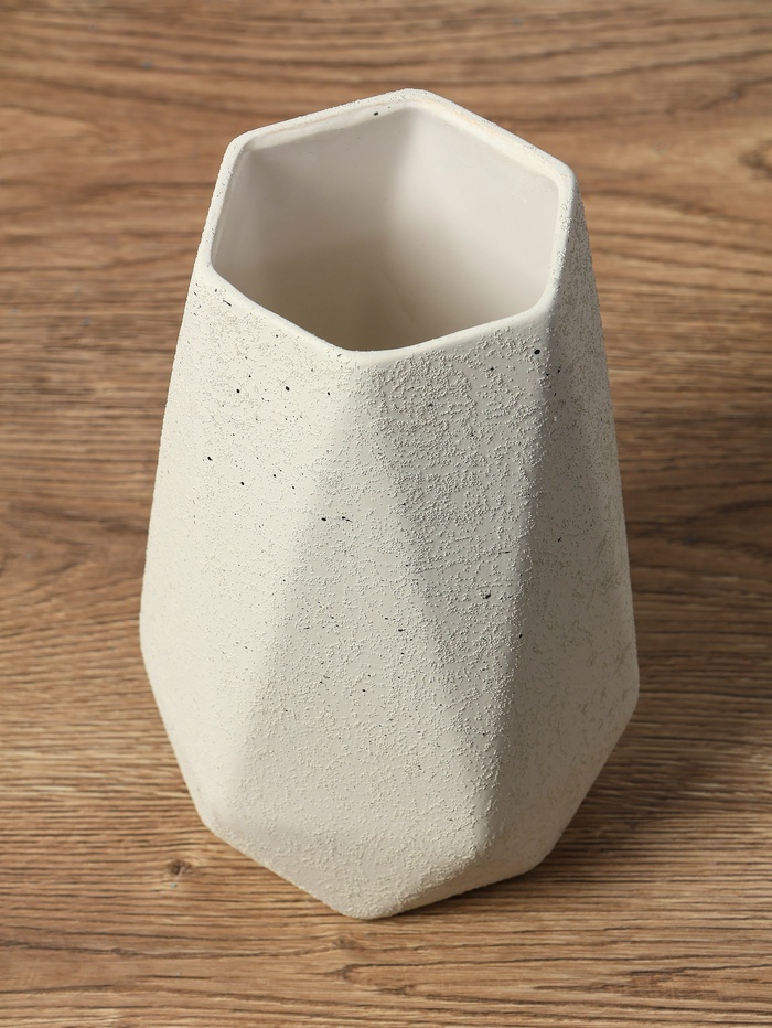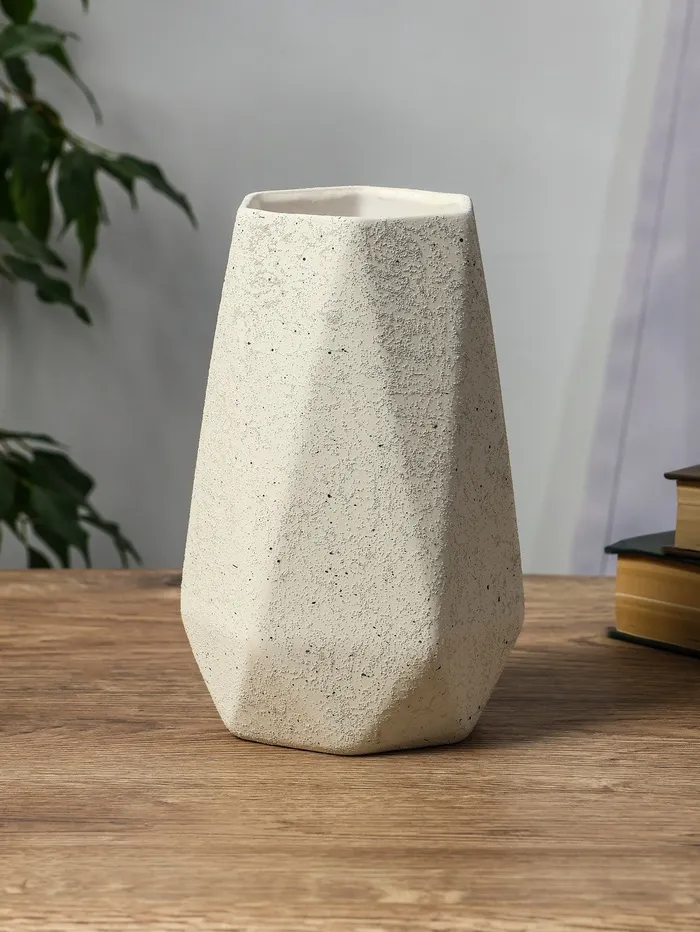 - Дизайн и оформление: Грани создают игру светотени на поверхности, а белый цвет универсально сочетается с любыми оттенками интерьера. Ваза подходит для различных стилей оформления — от минимализма до классики.