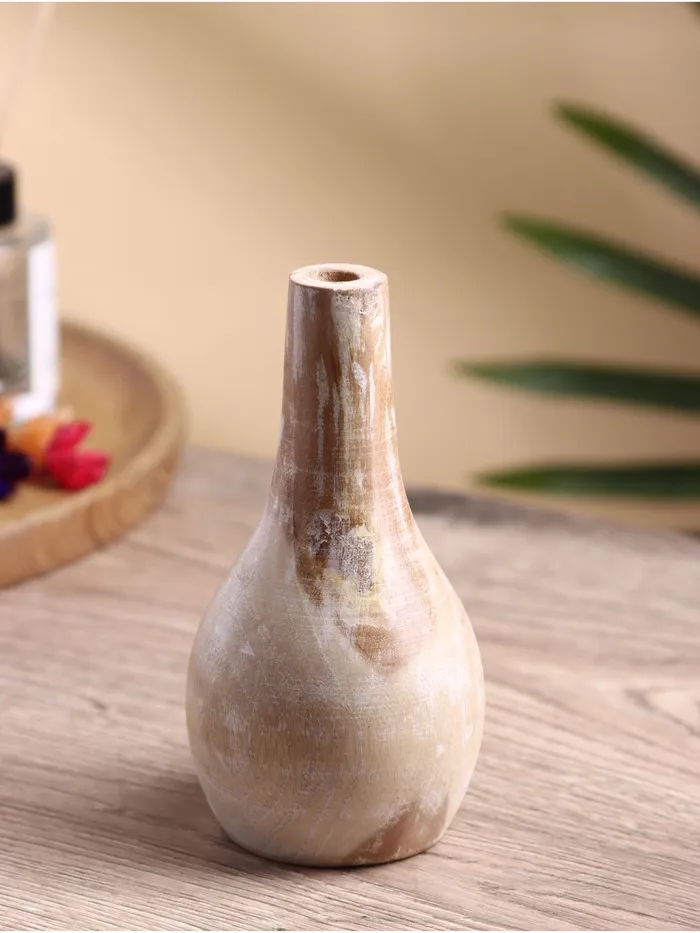 Ваза «Мистра, 8×8×16 см, дерево Джати, бежевая